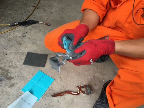鈑金工場付近を歩いていましたら、工場長がなにやらしておりました。